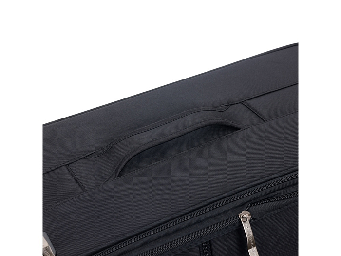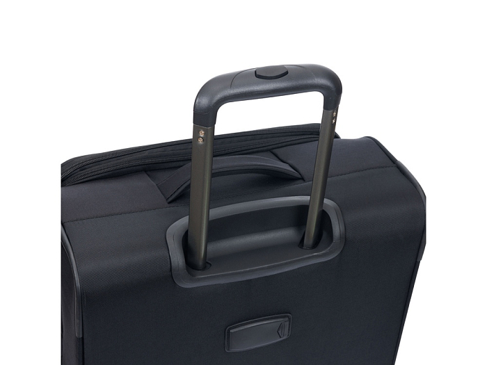 Легкая регулируемая телескопическая алюминиевая ручка и система из четырёх двойных колёс, вращающихся на 360 градусов, обеспечивает мягкий ход и свободное движение во всех направлениях.
