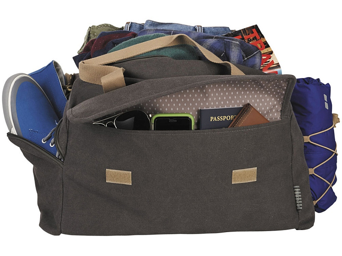 Сумка Field & Co.® Venture 16". Сумка Venture разработана для людей, которые жаждут приключений. Большое основное отделение с внутренним карманом из сетки. Большой карман спереди с органайзером. Съемные регулируемые лямки. Карман сбоку. Стропа для крепления к чемодану. 16 oz. холщовый хлопок.