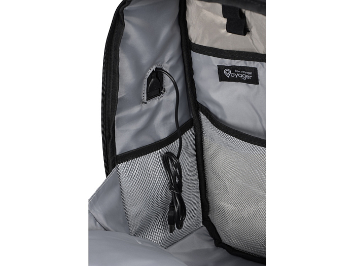 - внешний USB порт для зарядки устройств (шнур для подключения находится в большом внутреннем сетчатом кармане),