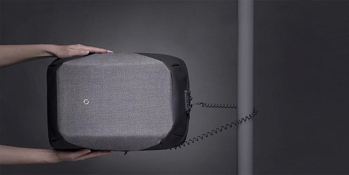 - Рюкзак ClickPack Pro оснащен стальным тросом, которым можно обхватить неподвижный предмет и затем фиксировать бегунком молнии в кодовом замке