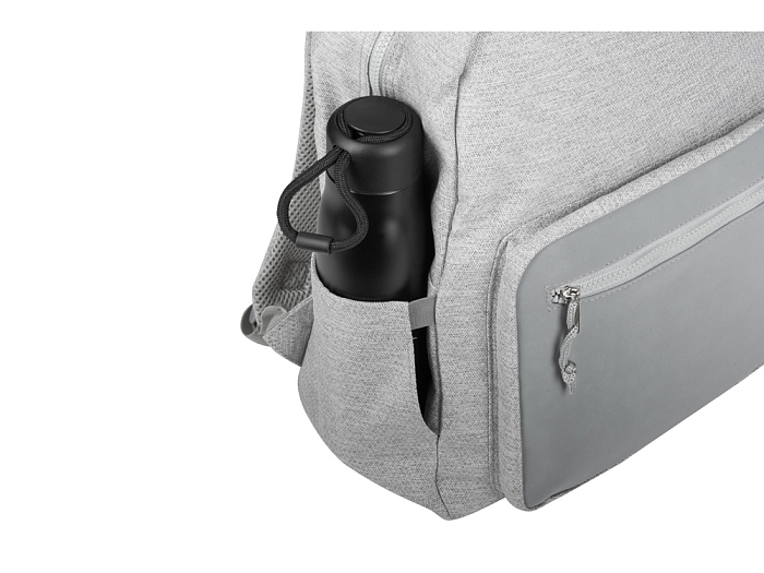 Легкий и вместительный рюкзак из плотной текстурной ткани с отделкой из экокожи удобен для путешествий и передвижения по городу. Внутри расположен карман для ноутбука, снаружи карман на молнии. Боковой растягивающийся карман на эластичной ленте подходит для зонтов и бутылок разного диаметра. Лямки регулируются по длине.