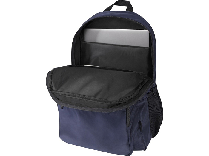 Рюкзак Trend Plus изготовлен из сертифицированной согласно GRS переработанной мягкой и немнущейся ткани и качественной подкладки из RPET. Рюкзак оснащен отделением для ноутбука диагональю 15", отделением-органайзером, передними карманами на молнии, боковыми эластичными сетчатыми карманами и сетчатой вентилируемой задней частью с лямкой для крепления к ручке чемодана. Регулируемые плечевые ремни для оптимального комфорта при ношении. Объем: 20 литр. Выдерживает вес до 10 кг. Не содержит ПВХ. GRS certified recycled polyester.