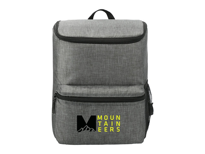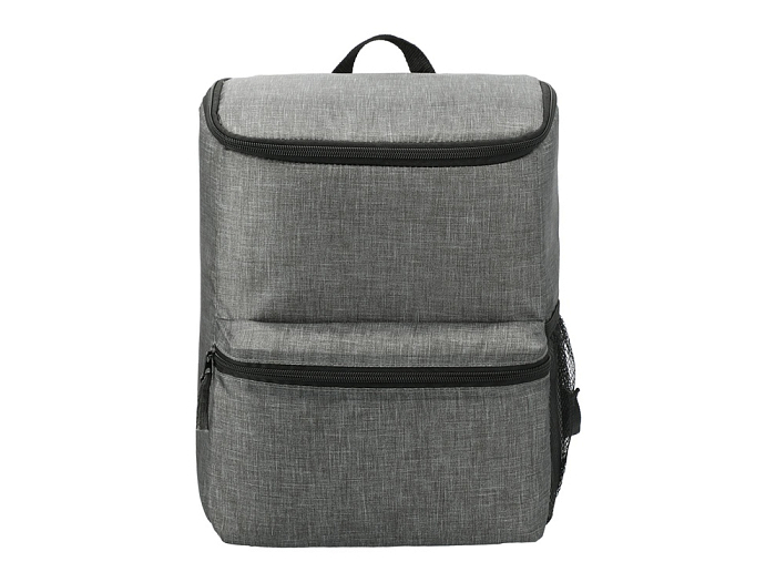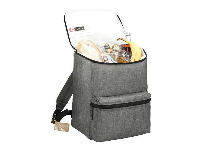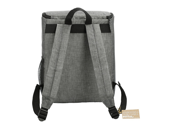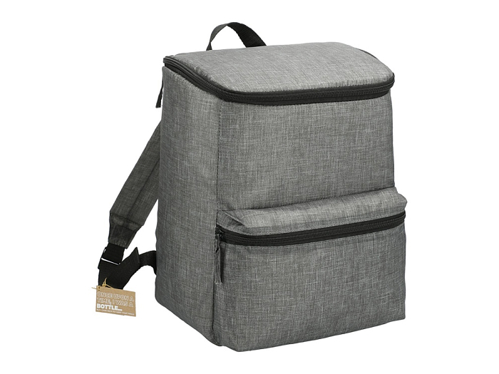 Рюкзак-холодильник из переработанного пластика вмещает 20 банок по 0,33 л. Спереди карман на молнии. Сбоку сетчатый карман. Лямки регулируются по длине.