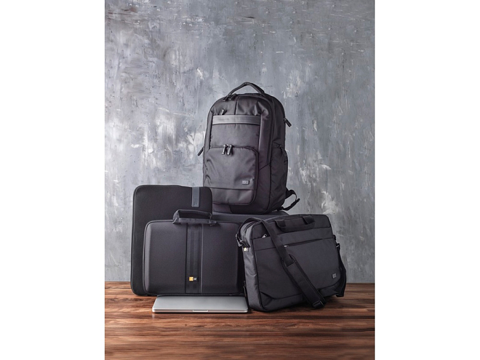 Имеет большое основное отделение на молнии с мягким чехлом для ноутбука 15,6" и планшета 10,1" и сетчатый карман на молнии для кабелей и аксессуаров. Поставляется с передней панелью-органайзером для хранения небольших электронных приборов, кабелей, аксессуаров, визитных карточек и ключей. Имеет расширяемые боковые карманы под бутылку с водой или блок питания, мягкие наплечные ремни, стеганую заднюю панель из сетки, мягкую ручку и рукав для фиксации на выдвижной ручке дорожной сумки. Гарантия от Case Logic: 25 лет.