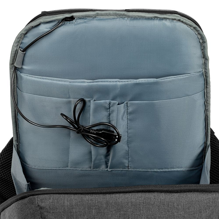 • Внешний USB-порт для зарядки гаджетов (внутри рюкзака — провод для подключения и карман для размещения аккумулятора)