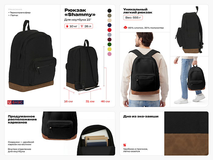 Уникальный легкий рюкзак из плотного хлопка выглядит стильно и элегантно. Внутри отделение для ноутбука, снаружи двойной карман на молнии. Сбоку расположен карман для бутылки или зонта. Дно из эко замши легко моется. Лямки регулируются по длине.