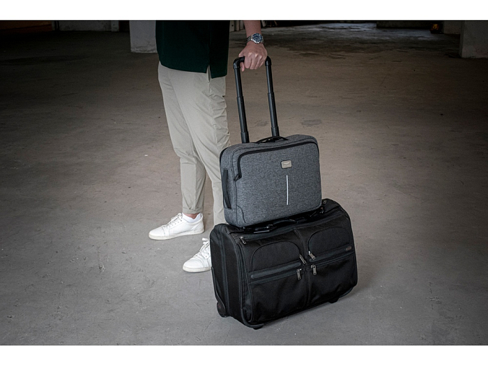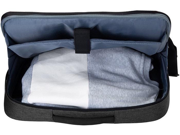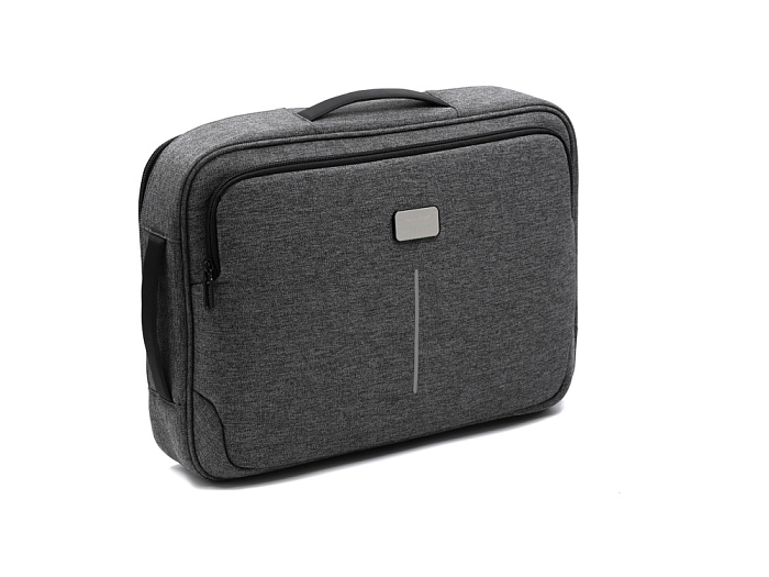 Рюкзак легко трансформируется в сумку для деловых поездок. Отстегивающиеся лямки можно спрятать в карман на молнии на спине. В комплекте 2 шильда под нанесение: металлический и из искусственной кожи.