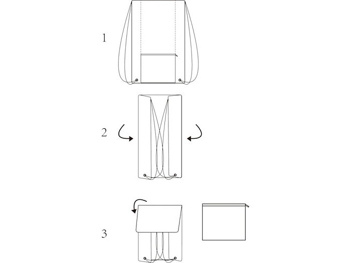 Плотный рюкзак со шнурком и большим основным отделением, затягивающимся на шнурок черного цвета. Меланжевый материал. Спереди расположен карман на молнии. Рюкзак складывается в наружный карман для компактного хранения.