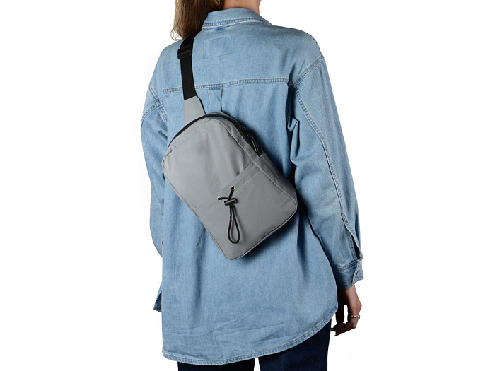 Светоотражающая сумка на одно плечо обеспечит дополнительную безопасность в темное время суток. Внутренний карман на молнии предназначен для хранения ценных вещей. Задняя часть сумки, прилегающая к телу, снабжена дышащей сеткой.