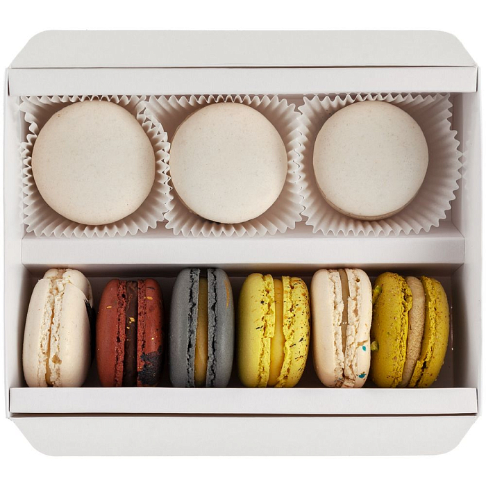 • Размеры макарон: высота 2,5-3 см, диаметр 4-5,5 см; коробка: 16х12,2х5,3 см