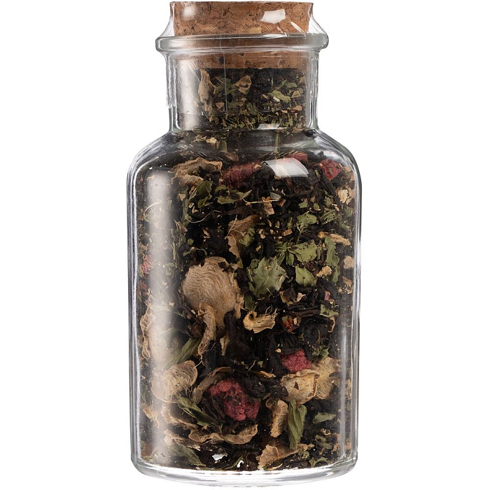 Состав: чай черный с имбирем и соком имбиря (чай черный байховый крупнолистовой, кусочки имбиря, сок имбиря), мята сушеная, малина сублимированная, ароматизатор натуральный «Малина».