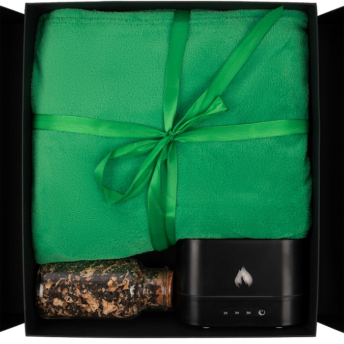 Мягкий флисовый плед, черный чай с медовыми гранулами, корицей и кусочками имбиря, а также увлажнитель воздуха с имитацией пламени — все самое необходимое для создания уюта в доме в подарочном наборе Housewarming.