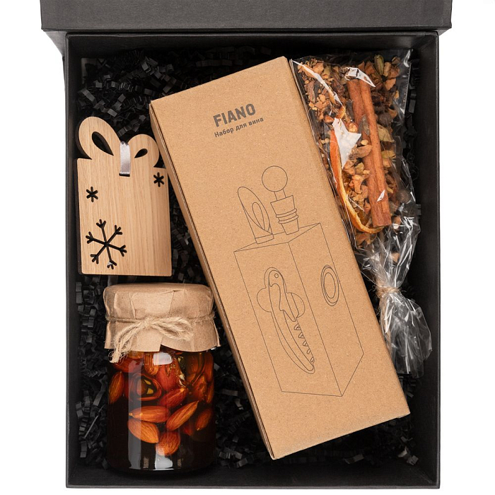Набор упакован в картонную коробку черного цвета с крышкой на магните.