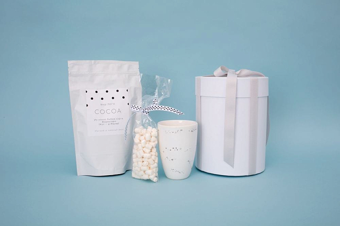 Порадуйте клиентов минималистичным подарком с кружкой ручной работы и авторским принтом в виде случайных капель чернил. В такую кружку особенно вкусно налить какао с маршмелоу.
