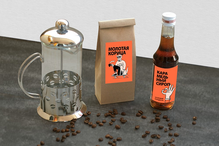 При тираже от 50 шт - на наклейке на набор, наклейка на сироп и на пакет с молотой корицей.