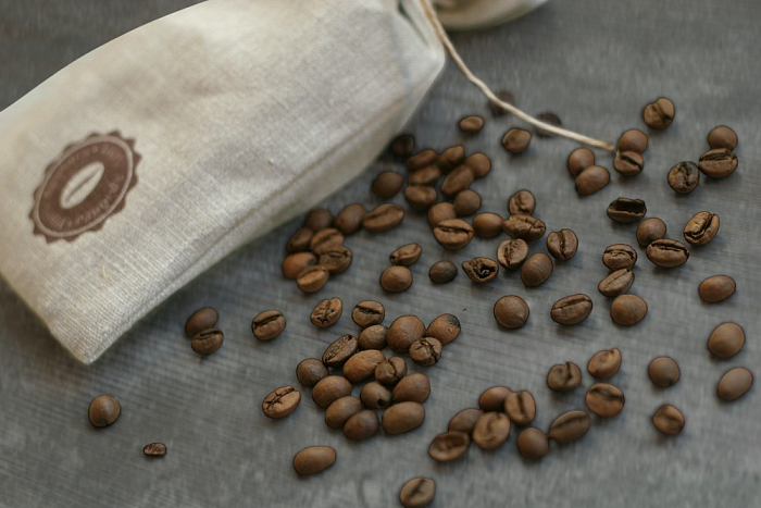 • 2 вида кофе по 150 гр. в льняных мешочках с принтом (кофе молотый или в зернах)