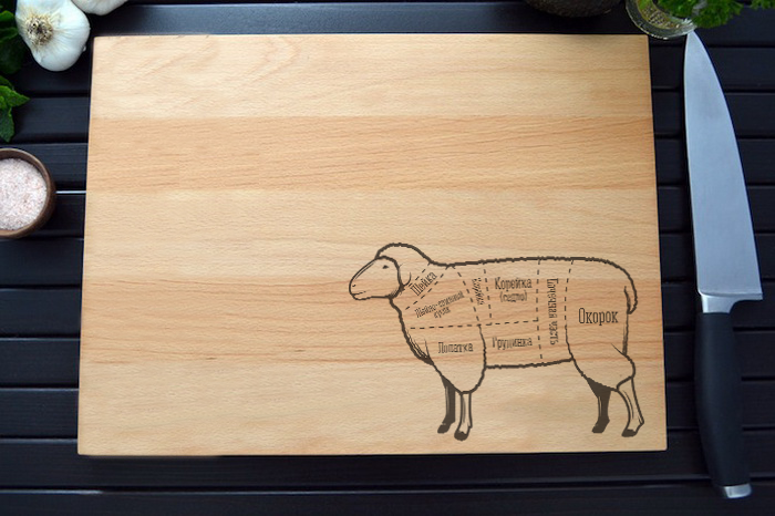 • Деревянная доска с гравировкой барана, размер доски 30 * 22 см