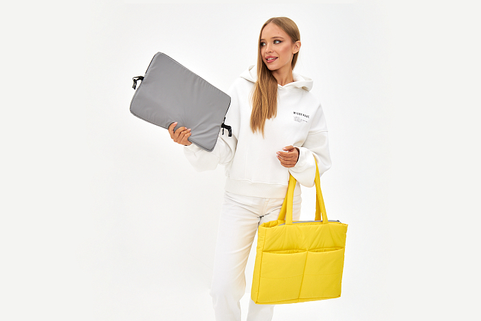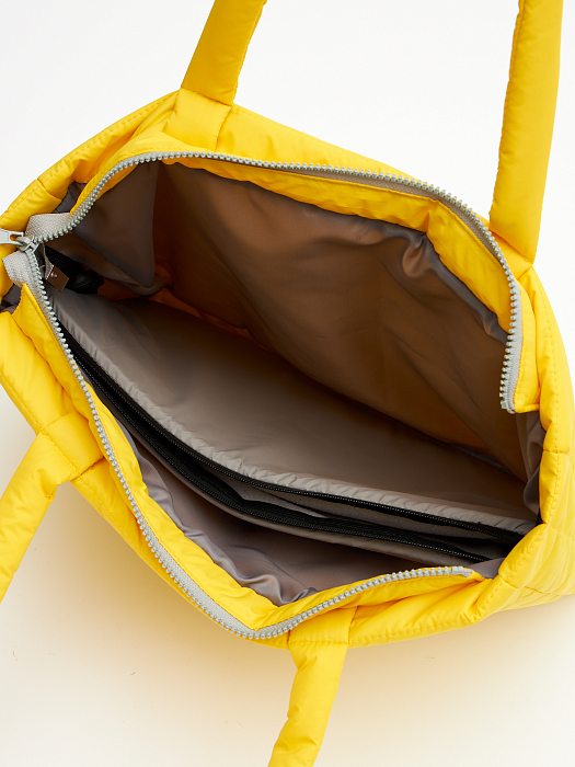 Сумка из дутой коллекции с внутренним чехлом для ноутбука на застежках.