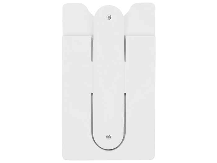 Чехол для визиток и кредитных карт с функцией подставки. За счет клейкой основы прикрепляется к обратной стороне телефона или любой другой плоской поверхности.
