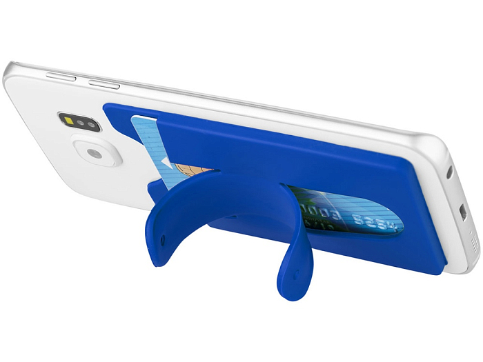 Чехол для карт с держателем мобильного. Этот мягкий защитный силиконовый чехол с помощью клейкой ленты можно легко прикрепить на задней стороне телефона. В нем можно разместить от 2 до 3 кредитных карт и / или удостоверения личности. Он также может быть использован в качестве подставки для телефона. Чехол достаточно тонкий и легко помещается в кармане. Силикон.
