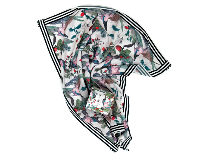 Платок из искусственного шелка саржевого плетения (твил) размером 70*70 см., с авторским принтом «Фазаны».