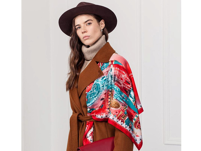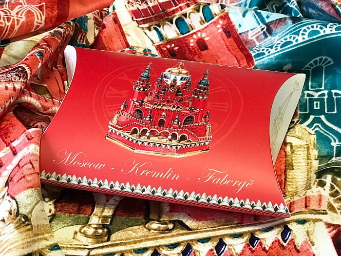 Платок "Кремль - Москва - Фаберже" от дизайнера Нины Ручкиной посвящён одним из самых красноречивых и ярких символов России.