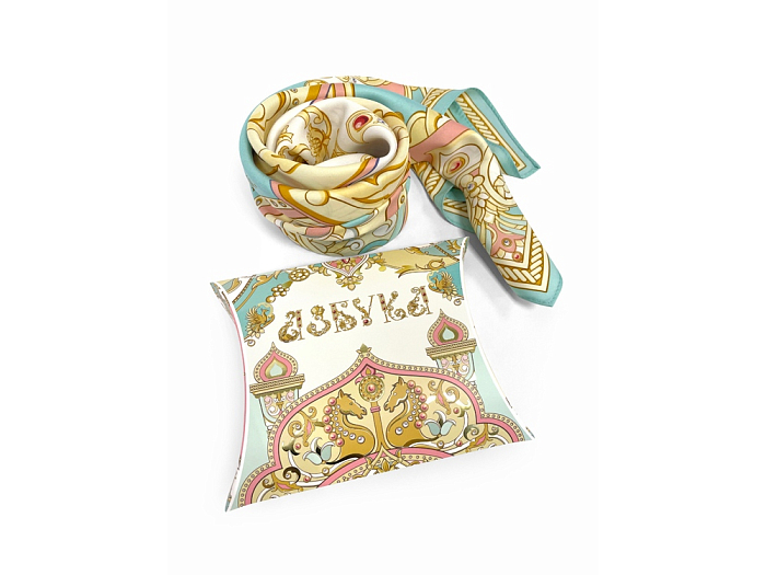 Платок “Русская Азбука” от дизайнера Нины Ручкиной - это зашифрованное послание предков, явившееся на тонкой материи. Мотивы русской архитектуры обрамляют Буквицы, щедро украшенные ажурными орнаментами.