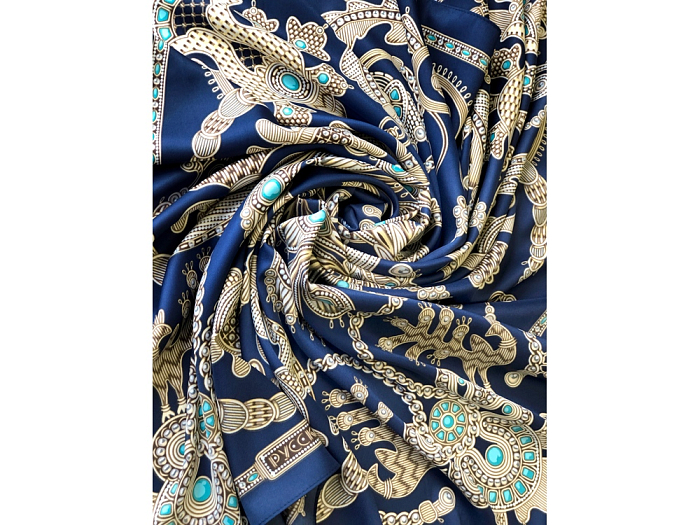 Платок «Русское золотное шитьё» посвящён драгоценному старинному русскому рукоделию. Дошедшие до нас памятники шитья, выполненные русскими мастерицами, являются произведениями высокой культуры. В изделиях сочетаются талант художника и тонкий вкус, духовное богатство, исполнительское мастерство вышивальщиц.