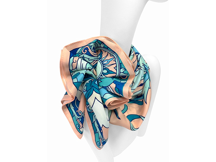 В центре авторского принта — удивительной красоты женщина с белоснежными крыльями, наделенная магическими способностями и житейской мудростью. Оригинальное сочетание тонов, цветочных орнаментов и русского колорита делают аксессуар нежным и самобытным.
