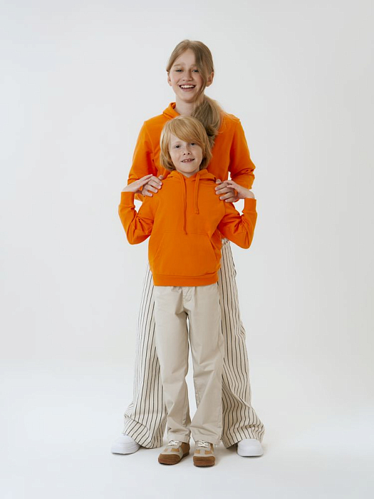 Легкое детское худи с карманом-кенгуру. Выполнено из высококачественного полотна, которое прошло активное крашение, предварительную термоусадку и обработку энзимами.