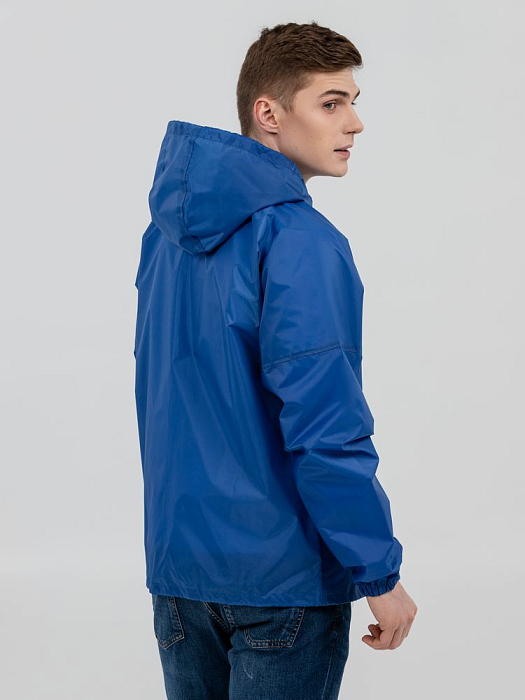 Укороченный дождевик свободного кроя из ткани таффета с влагозащитным покрытием. Складывается в мешочек — удобно брать с собой.