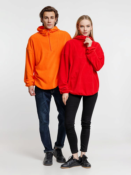 Флисовый анорак унисекс с капюшоном.