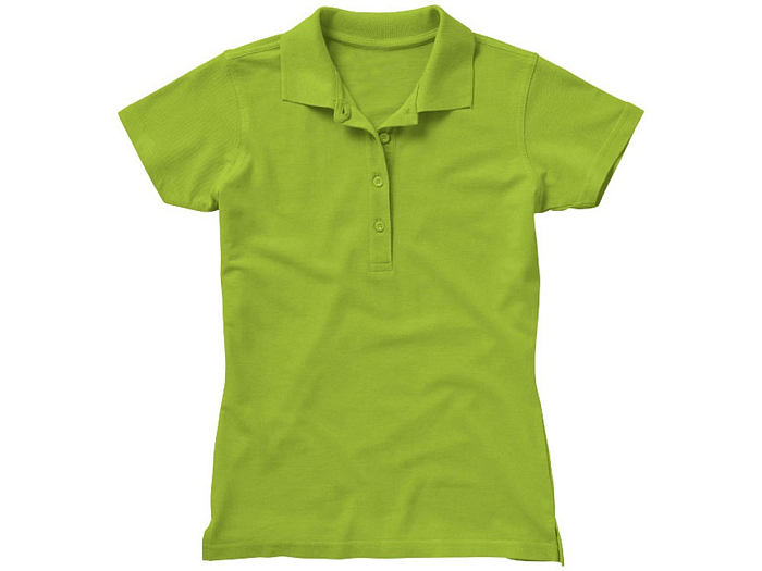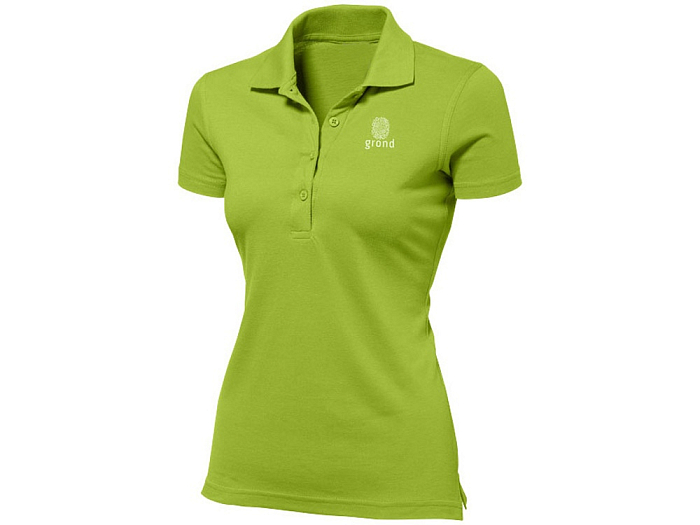 Женская рубашка-поло First. Воротник 1х1. Обшивка внутри воротника. Мужская и детская модели с 2 пуговицами, женская - с 4 пуговицами. Пуговицы с гравировкой в тон. Пике, 100% хлопок. 160 г/м2.