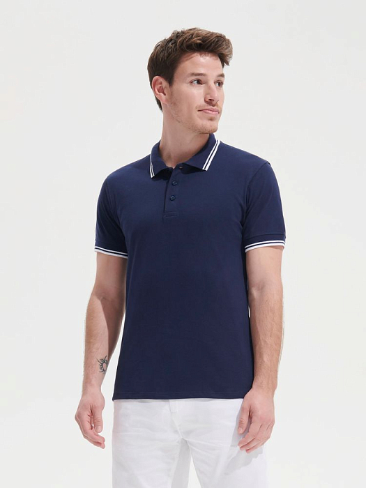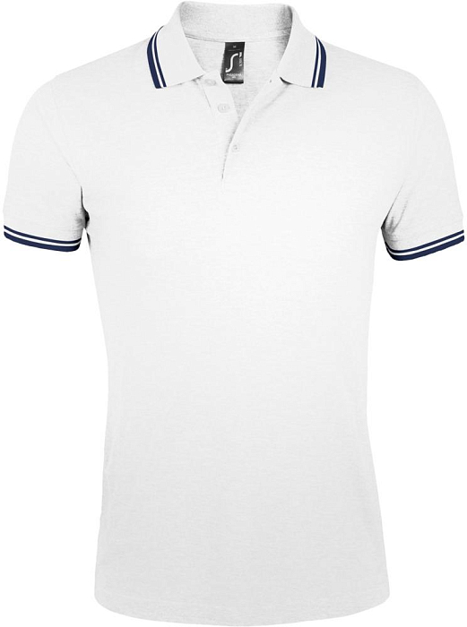 Рубашка поло мужская Pasadena Men 200 с контрастной отделкой, белая с синим
