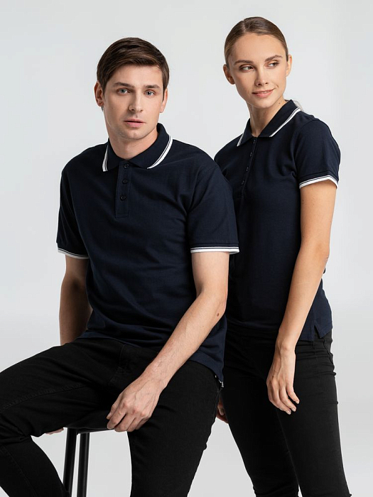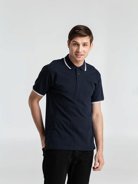 Рубашка поло мужская с контрастной отделкой Practice 270, темно-синий/белый