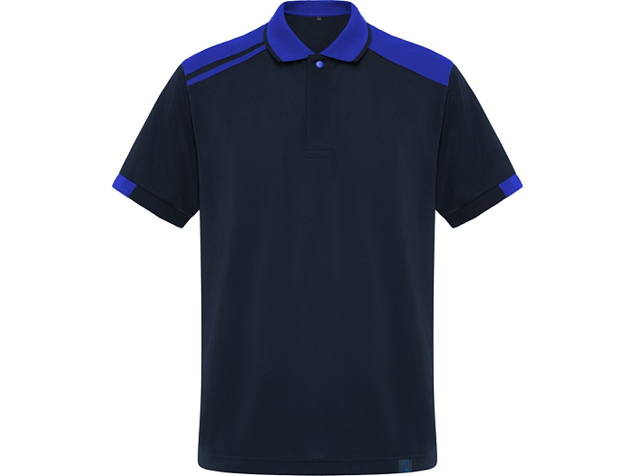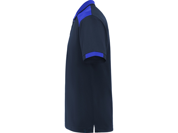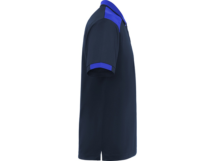 Рубашка-поло с коротким рукавом в двухцветной комбинации. Воротник и половина рукава отделана рибом 1x1. Планка на 2 пуговицы. Усиленные закрытые швы по воротнику. Боковые разрезы внизу. Контрастные плечи и детали. Дополнительный контрастный карман.
