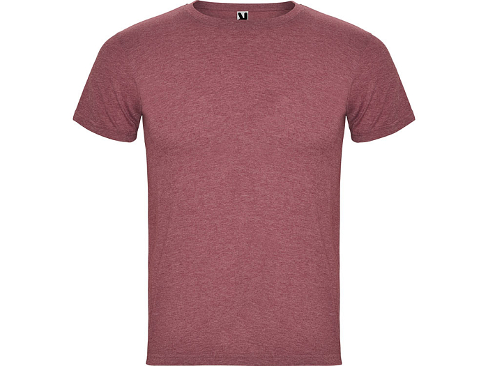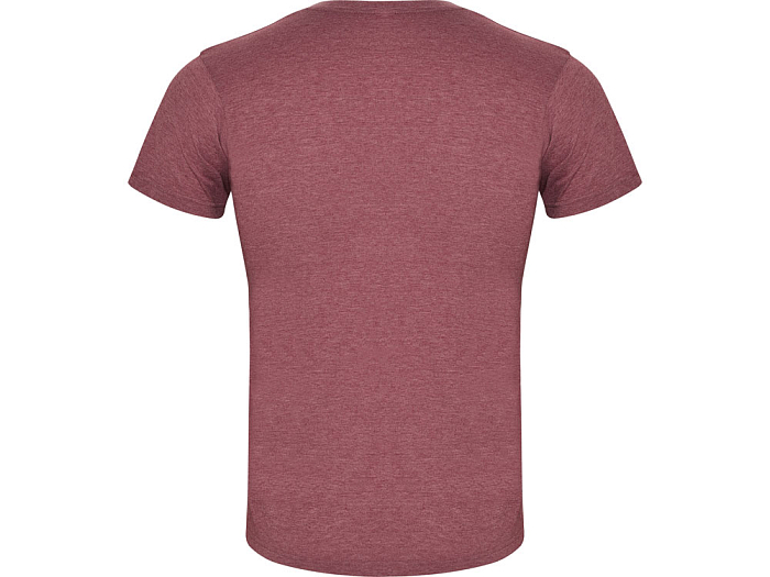 Футболка без боковых швов с коротким рукавом в меланжевом эффекте. Риб горловины 1х1 дополнительно укреплен двойной строчкой.