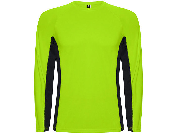 Футболка с длинным рукавом реглан из двух комбинируемых полотен. Основное полотно из структурного полотна, а боковые вставки и внутренняя сторона рукава из микроперфорированного полотна. Круглый вырез горловины дополнительно укреплен плоской строчкой. Комфортная и удобная модель