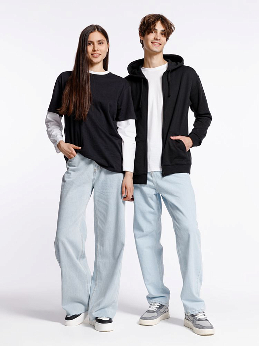 Базовая футболка унисекс без боковых швов. Полотно прошло активное крашение и предварительную усадку, благодаря чему изделие надолго сохраняет цвет и форму.