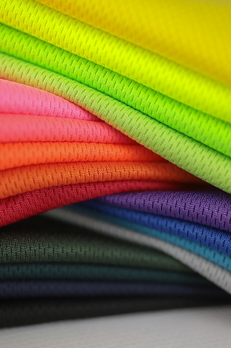 Майка приталенного кроя из спортивной сетки. Горловина и проймы обработаны бейкой.