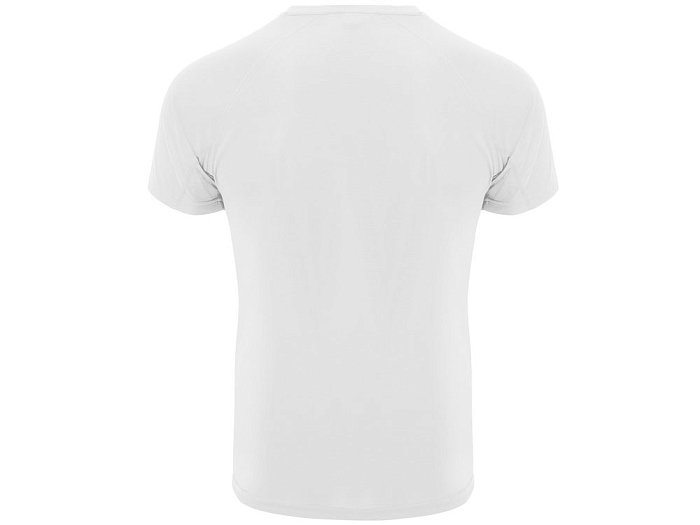 Спортивная футболка с коротким рукавом реглан. Круглый вырез горловины с отделкой плоским швом. Рукав сложного кроя для обеспечения дополнительного удобства при занятиях спортом. Отделка плоским швом с застилом по пройме и рукавам.