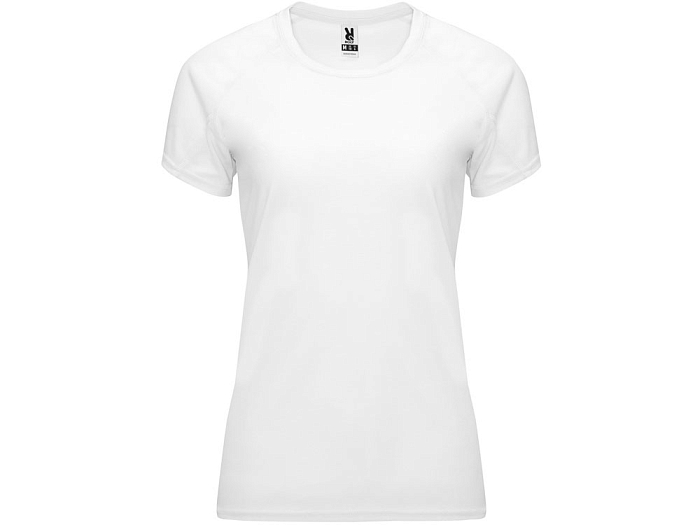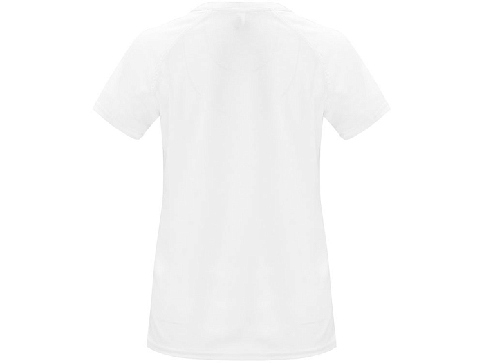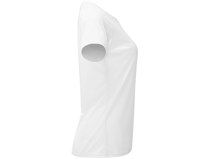 Спортивная футболка с коротким рукавом реглан для женщин. Круглый вырез горловины с отделкой плоским швом. Рукав сложного кроя для обеспечения дополнительного удобства при занятиях спортом. Отделка плоским швом с застилом по пройме и рукавам.