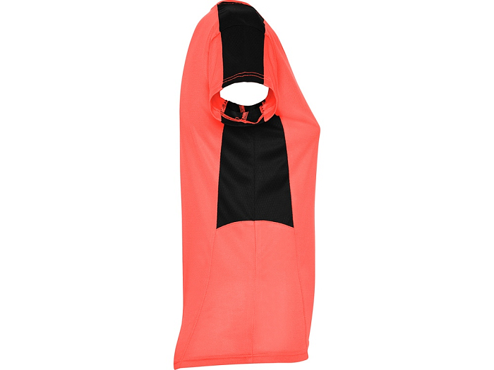 Женская футболка с коротким рукавом. V-образная горловина. Комбинация из 2 полотен контрастного цвета: структурное полотно на полочке и дышащая 3D сетка на плечах и боках.