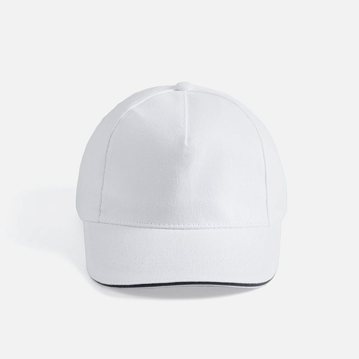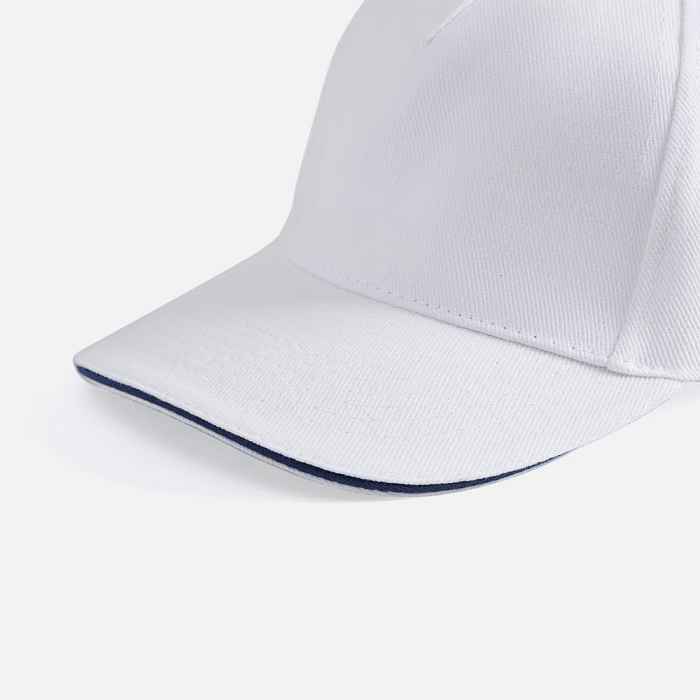 Модель бейсболки с 5-ю клиньями без лобового шва из плотного чесаного хлопка.