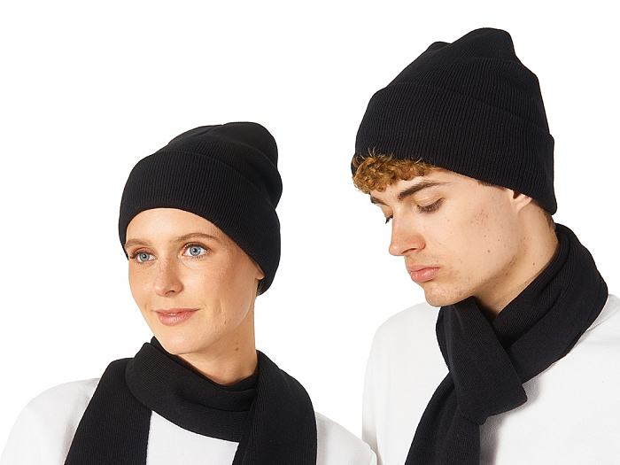 Двухслойная шапка из мягкого трикотажа. Регулируемый отворот.