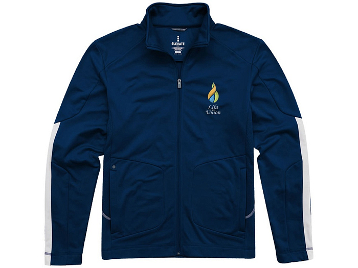 Куртка Maple. Универсальный покрой. Карманы для рук на молнии. Внутренняя планка. Декоративные контрастные швы спереди и сзади. Внутреннее отверстие для медиапроводов. Стропы контрастного цвета на рукавах. Джерси гладкого переплетения, 100% полиэстер с чесаной спинкой. 195 г/м2.