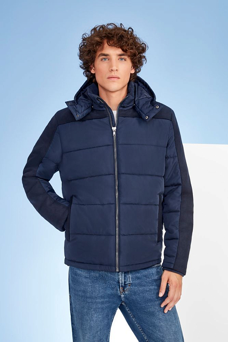 Мужская утепленная куртка на молнии с отстегивающимся капюшоном.