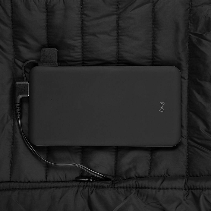1. Подключите внешний аккумулятор к кабелю во внешнем кармане куртки.