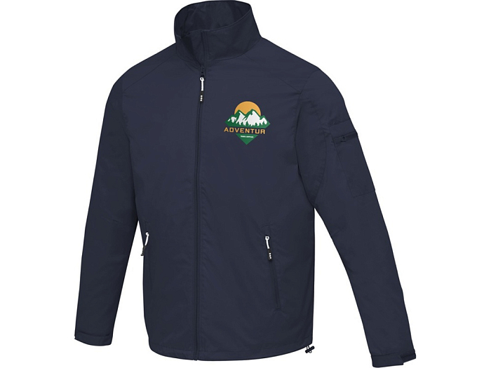 Мужская легкая куртка Palo. Водонепроницаемость 2000 мм и пропускание воздуха 2000 г/м². Карман на рукаве. Внутренний карман. Передние карманы с застежкой-молнией. Вентиляционные отверстия с матовыми люверсами возле подмышек. Регулируемые манжеты с застежкой на липучке. Регулируемый шнурок с зажимом внизу подола. Обратная застежка-молния по центру. Бегунки застежки-молнии с простой фиксацией. Резиновая петля для подвешивания с символикой. Главный лейбл нанесен методом термоприклеивания, удобным для размещения рисунков на ткани. 320T nylon taslon twill 100% Нейлон, 133 g/m2, Lining, 210T polyester taffeta 100% Полиэстер, 60 g/m2.