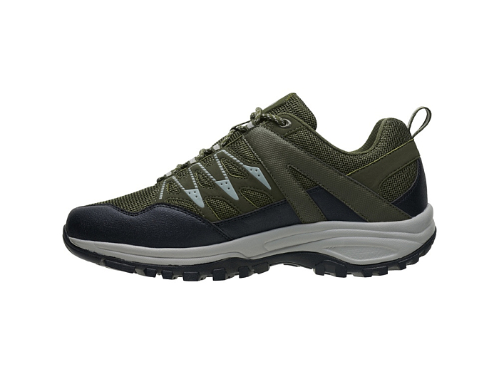 Кроссовки для трекинга. Круглые шнурки, дышащая сетчатая ткань и вставки из искусственной кожи в тон. Контрастные детали черного цвета.